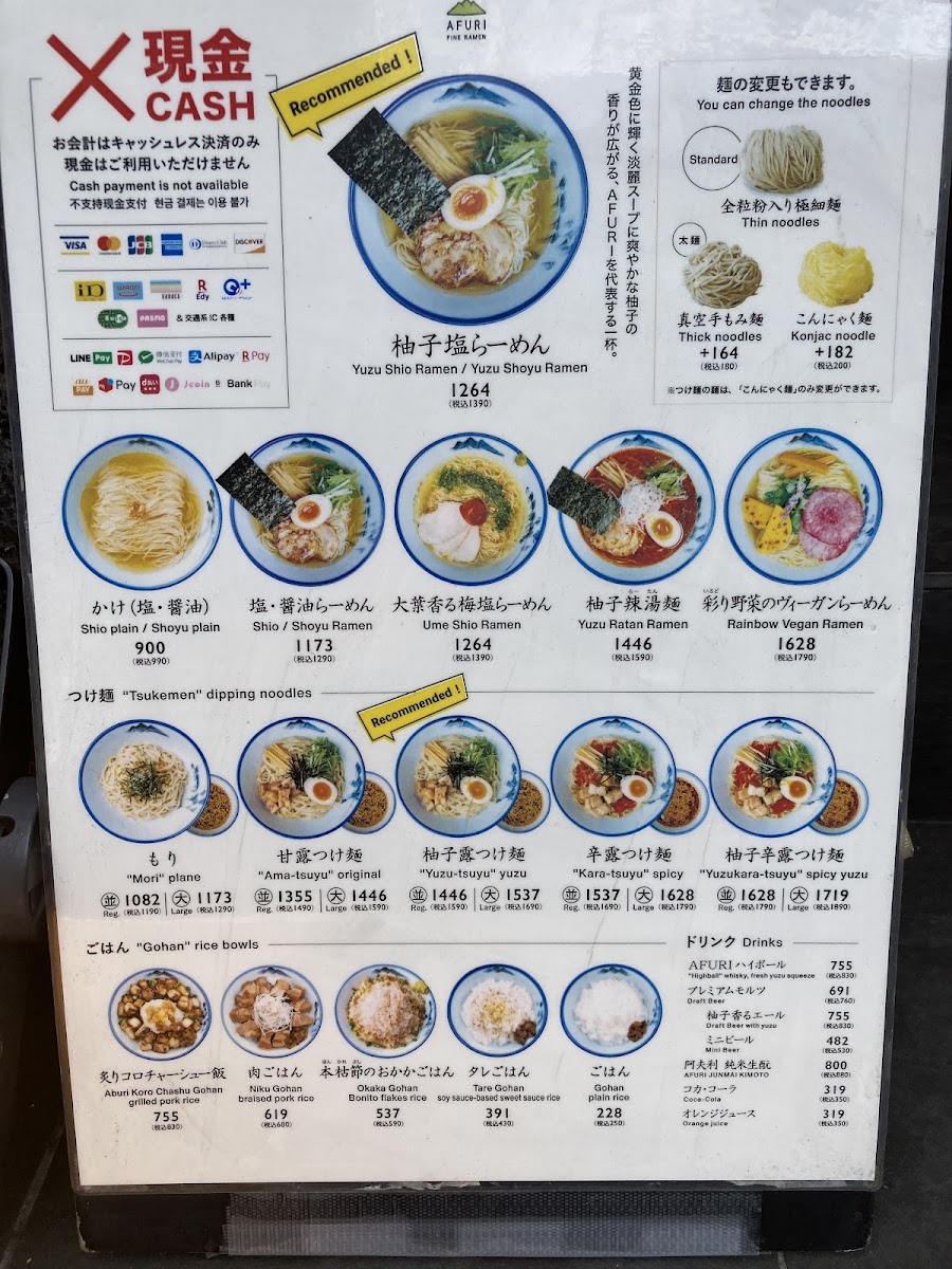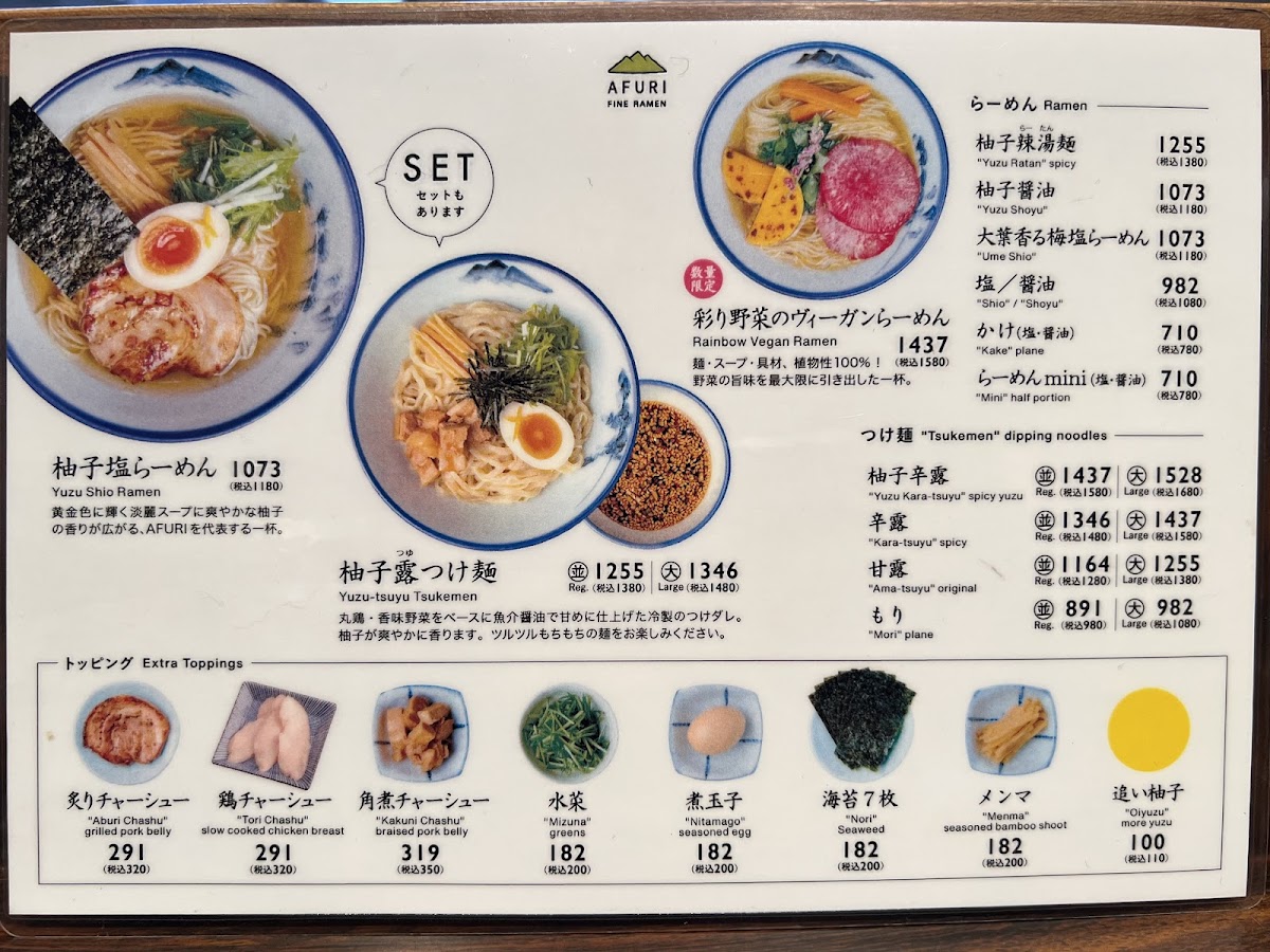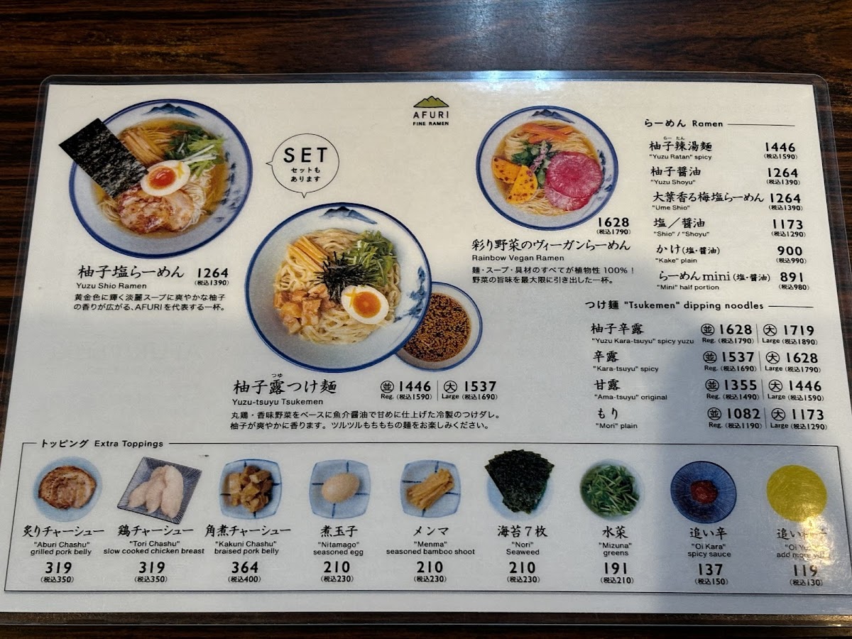 Visitors can indulge in diverse menu offerings, including wonton ramen and a selection of noodle types to suit individual tastes. The ambiance is welcoming, and the service is impressively quick, ensuring a satisfying ramen fix—ideal for busy diners. Though some may find parts of the pork chashu slightly charred and the chicken less tender than other locations, the overall experience remains delightful. Afuri's delicious flavors and vibrant atmosphere promise an unforgettable culinary journey in every bowl.